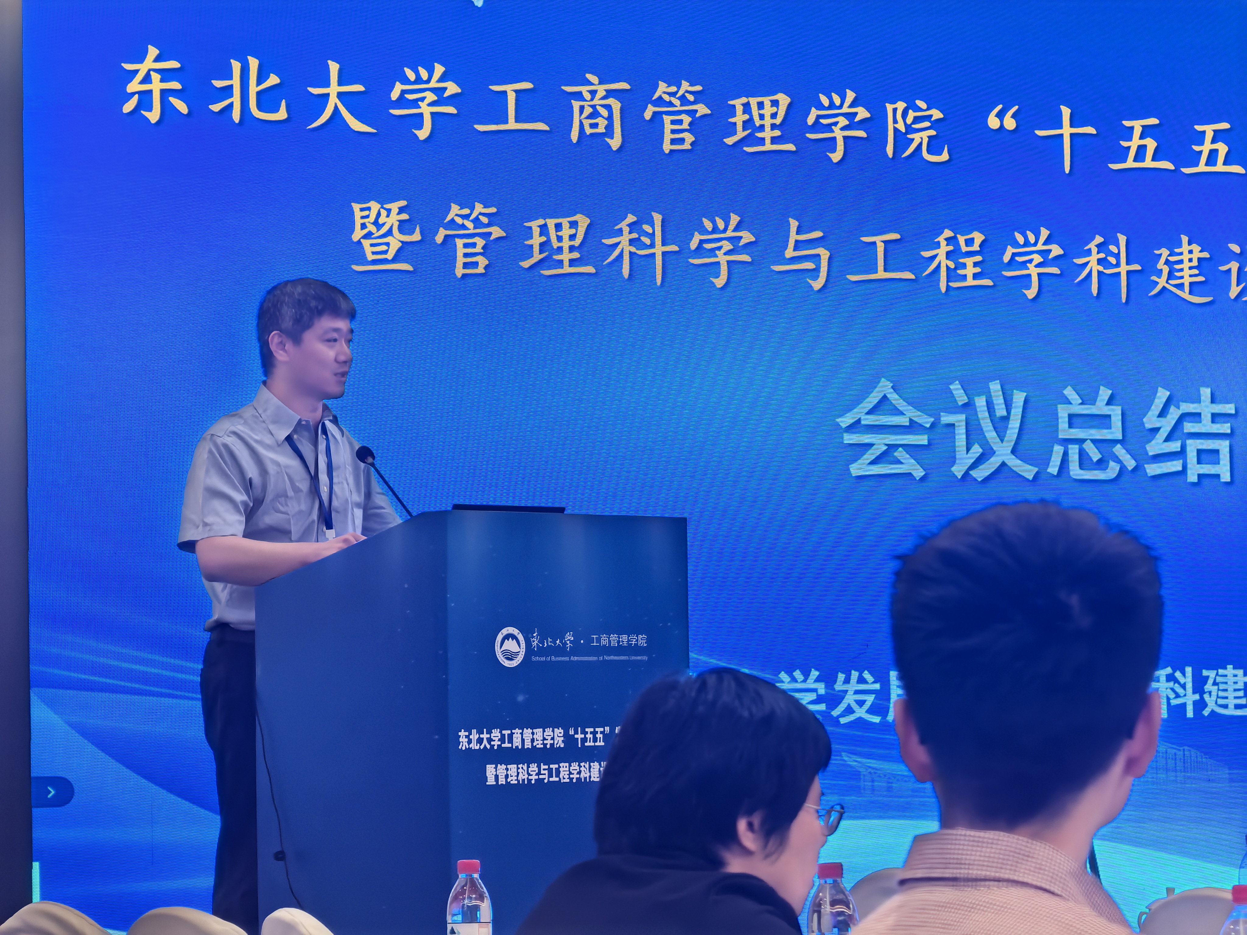 桃花族论坛 发展规划与学科建设处处长沈岩柏作会议总结。沈岩柏首先代表学校感谢杨善林院士、陈晓红院士等专家的建言,介绍了学校“十五五”规划编制工作进展,肯定了学院学科建设成果。沈岩柏表示,支持按专家建议推进学科发展,要求学院量化差距、分解“四重大一顶尖”任务,明确学校支持举措,助力学院在“十五五”期间提升学科竞争力。他希望学院梳理建议、优化规划,聚焦目标发力,确保规划落地。